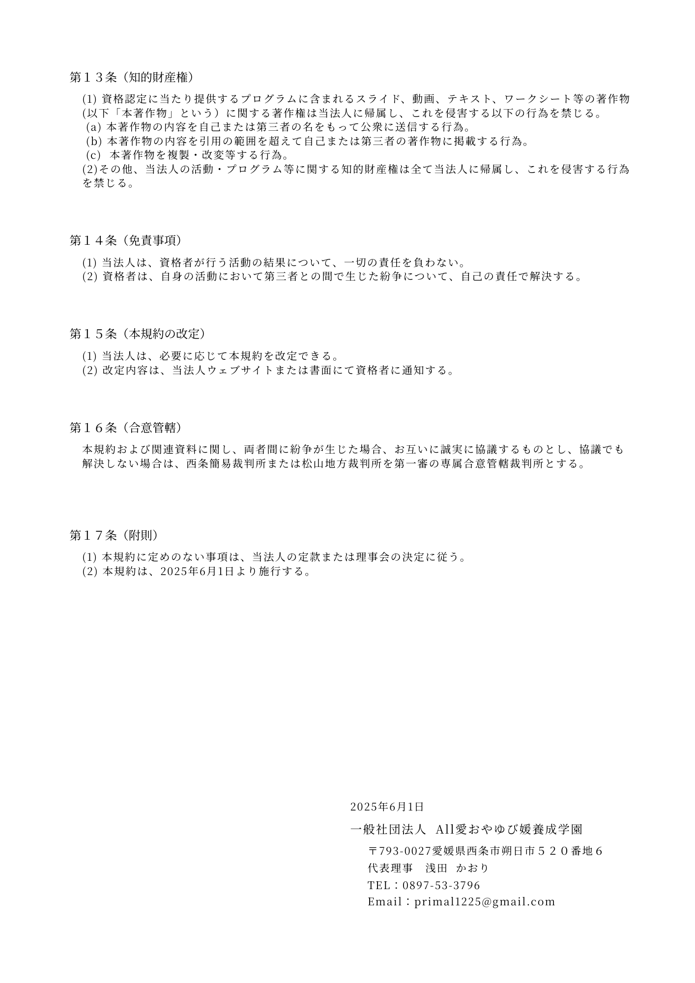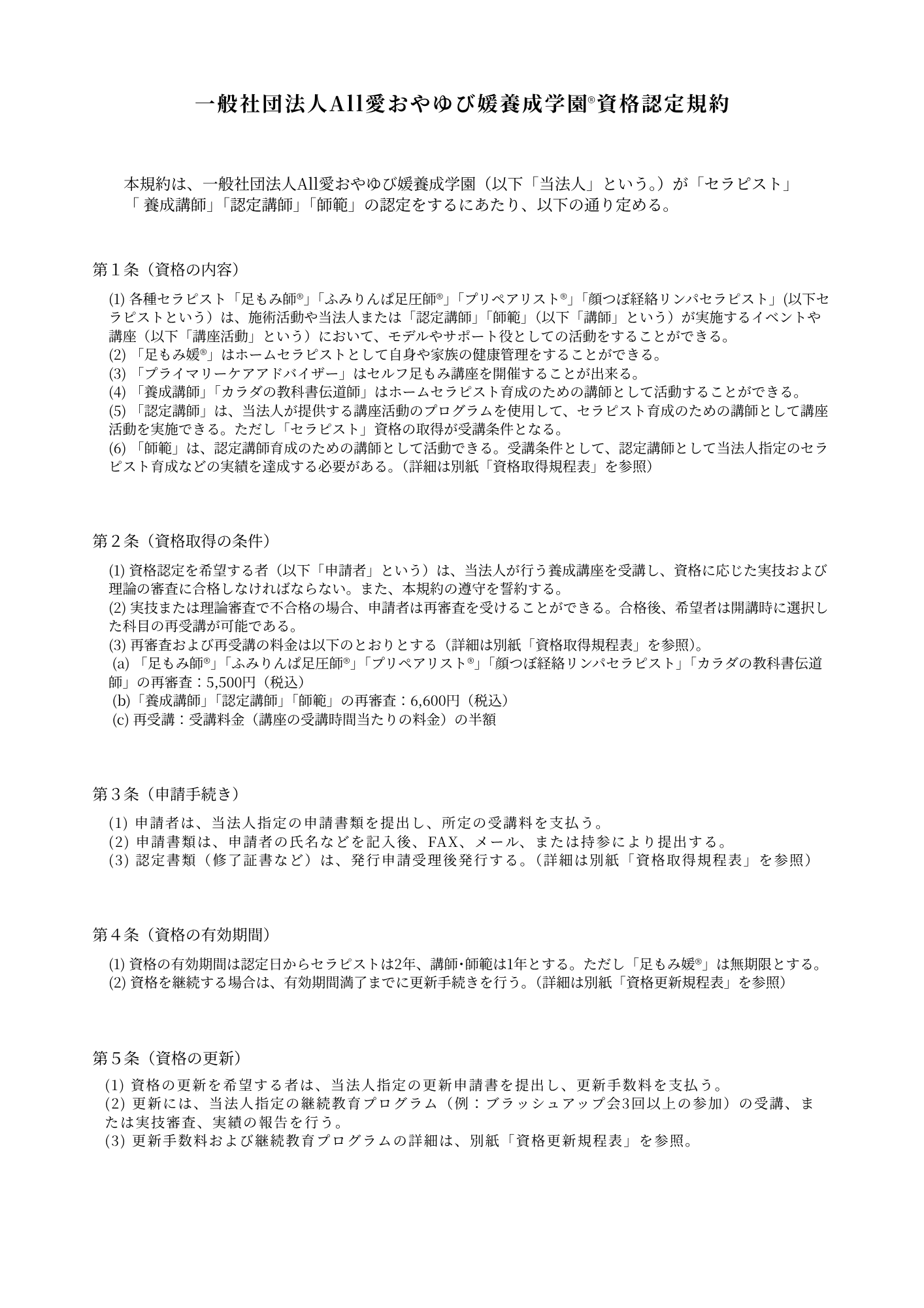 学園(資格認定)規約